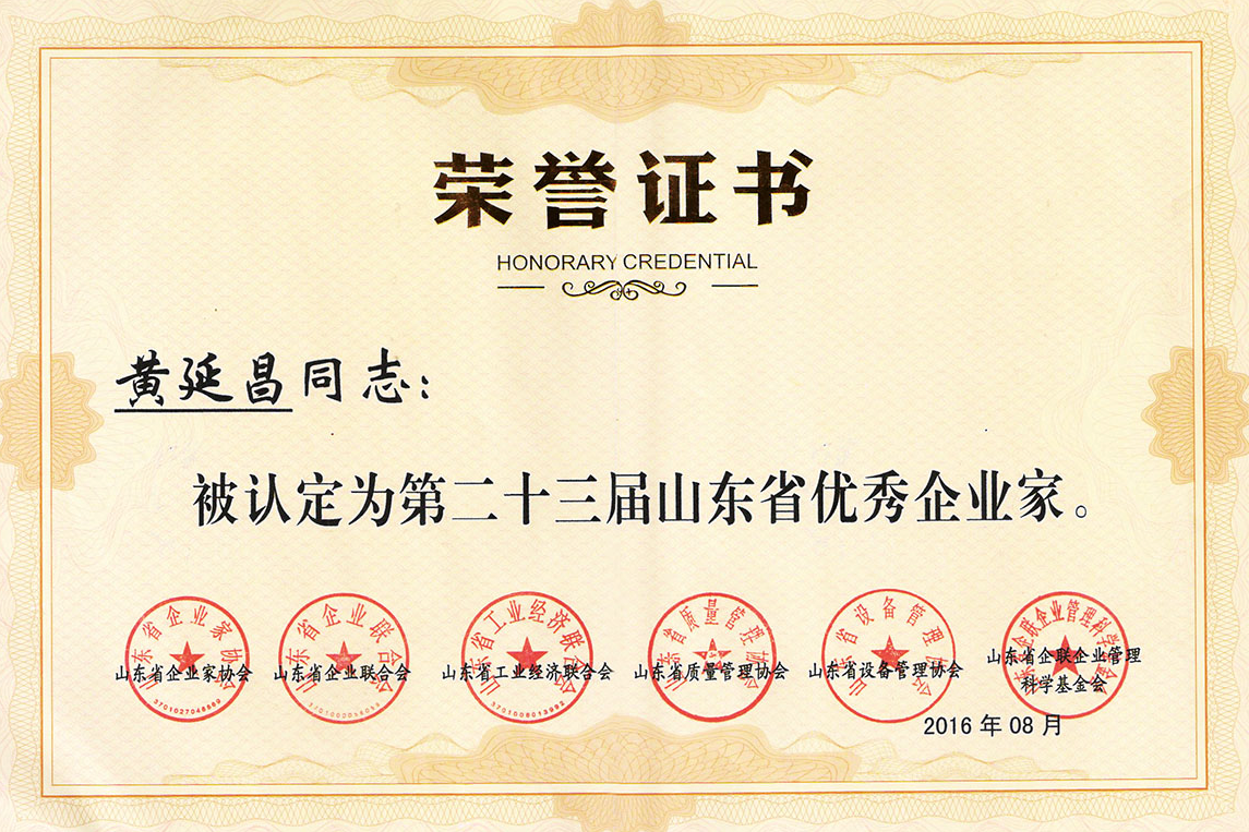 • ■2016-08-06 我公司董事長被認定為第二十三屆山東省優秀企業家