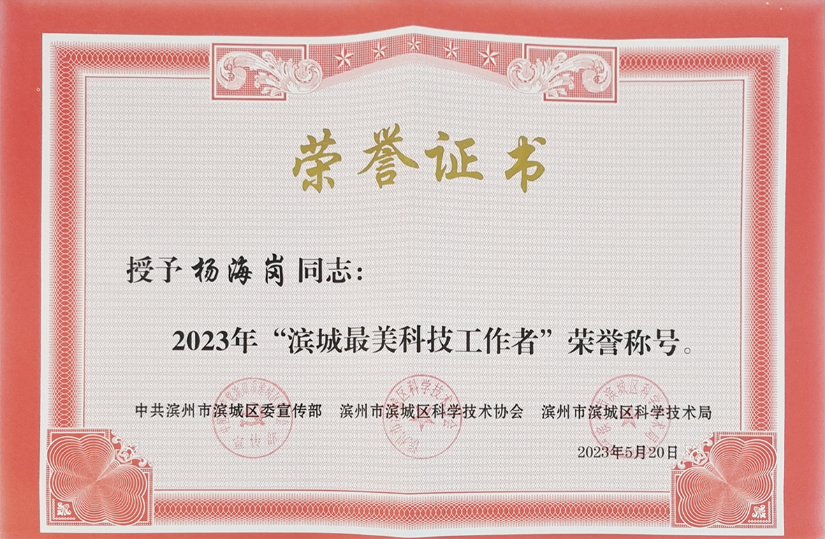 ■2023-06-13 我公司合成事業(yè)部副經(jīng)理?xiàng)詈彉s獲 2023年“濱城最美科技工作者”榮譽(yù)稱號(hào)
