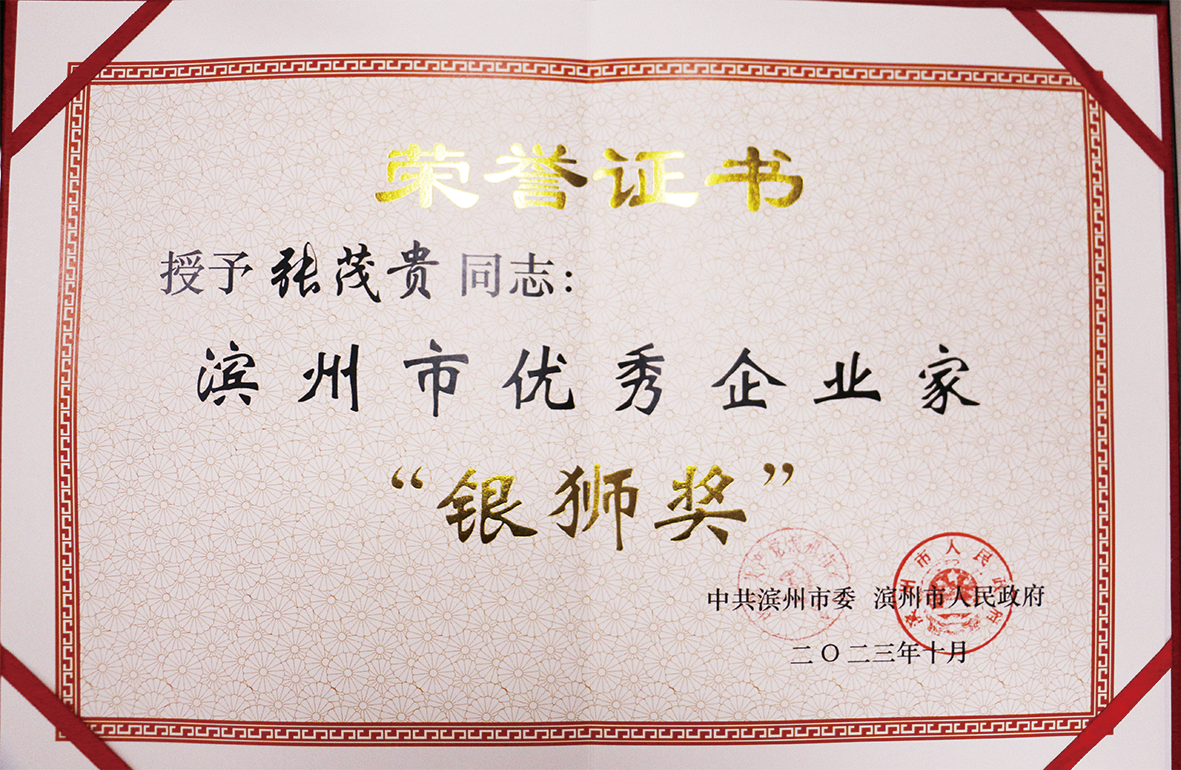 ■2023-11-15 我公司總經(jīng)理張茂貴榮獲 2023濱州市優(yōu)秀企業(yè)家“銀獅獎(jiǎng)”