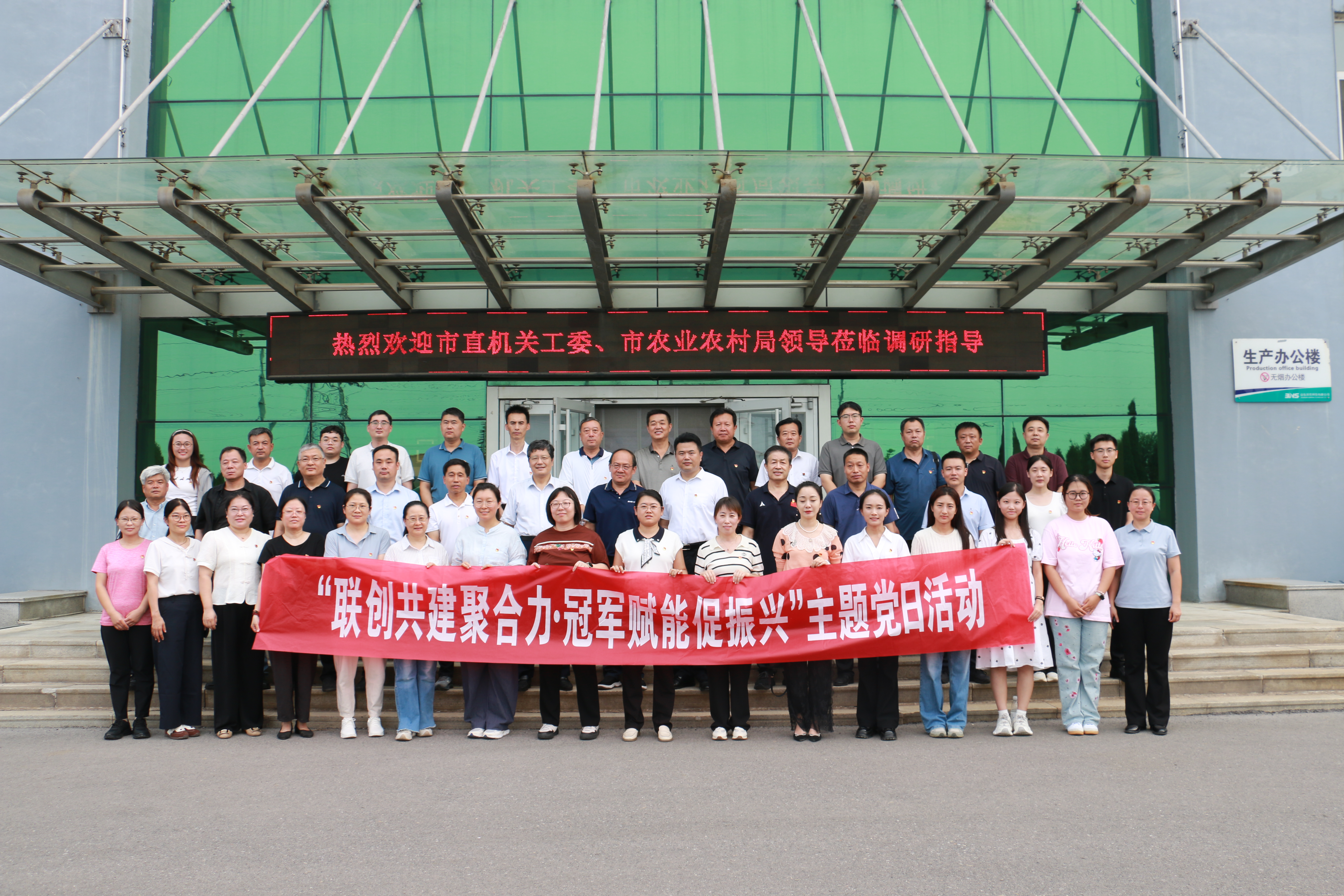 濱州市農(nóng)業(yè)農(nóng)村局機(jī)關(guān)黨委聯(lián)合市委市直機(jī)關(guān)工委來我公司開展主題黨日活動(dòng)發(fā)布時(shí)間:2025-11-15 15:34 8月8日下午,濱州市農(nóng)業(yè)農(nóng)村局機(jī)關(guān)黨委聯(lián)合市 直機(jī)關(guān)工委走進(jìn)我公司開展主題黨日活動(dòng),市農(nóng)業(yè)農(nóng)村局黨組副書記田俊杰,局黨組成員、副局長(zhǎng)高祥,市委市直機(jī)關(guān)工委副書記張榮堂,市委市直機(jī)關(guān)工委副書記董保云參加活動(dòng)。副區(qū)長(zhǎng)從立宙,區(qū)農(nóng)業(yè)農(nóng)村局黨組書記、局長(zhǎng)孟小光,區(qū)委區(qū)直機(jī)關(guān)工委書記張海娟,區(qū)委區(qū)直機(jī)關(guān)工委副書記李璇陪同。我公司黨委書記、董事長(zhǎng)李華,人力資源部主任王淘,副主任李明德,計(jì)劃運(yùn)營(yíng)中心主任助理張慧熱情接待并陪同參觀。 |
